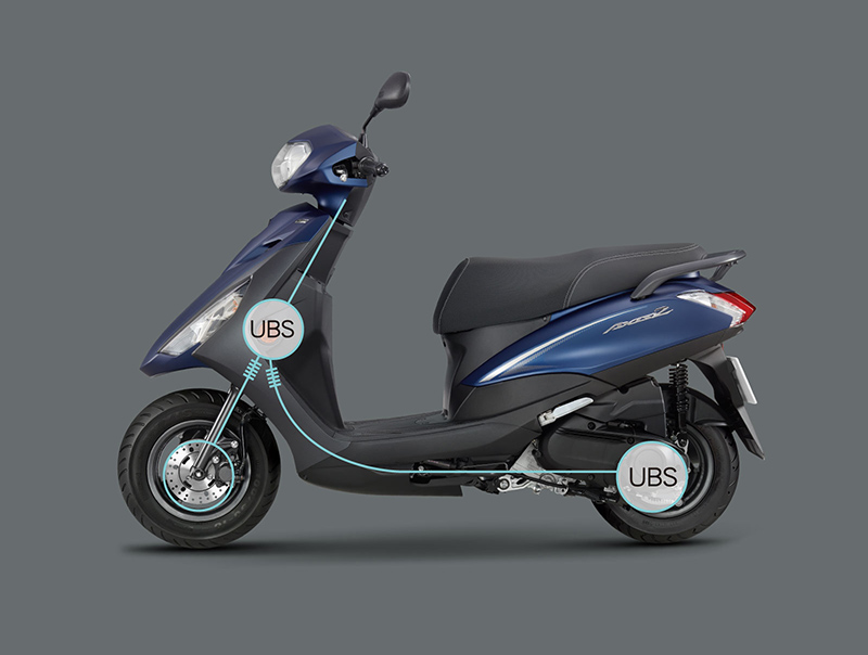 透過前、後輪連動煞車,有效縮短煞車距離