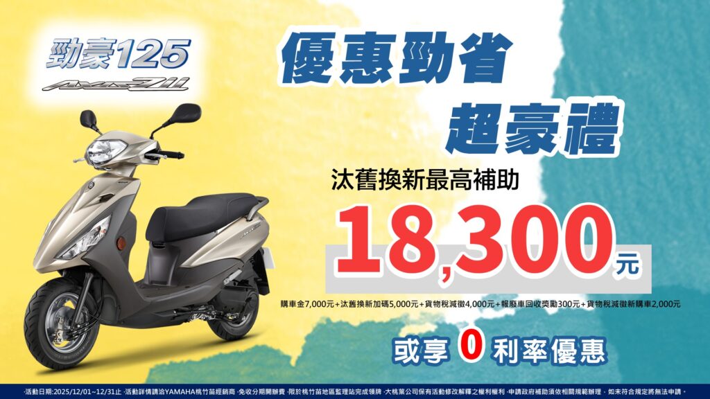 勁豪 汰舊換新再加碼! 最高補優惠18,300元 18,300元=購車金7,000元+汰舊換新加碼5,000元