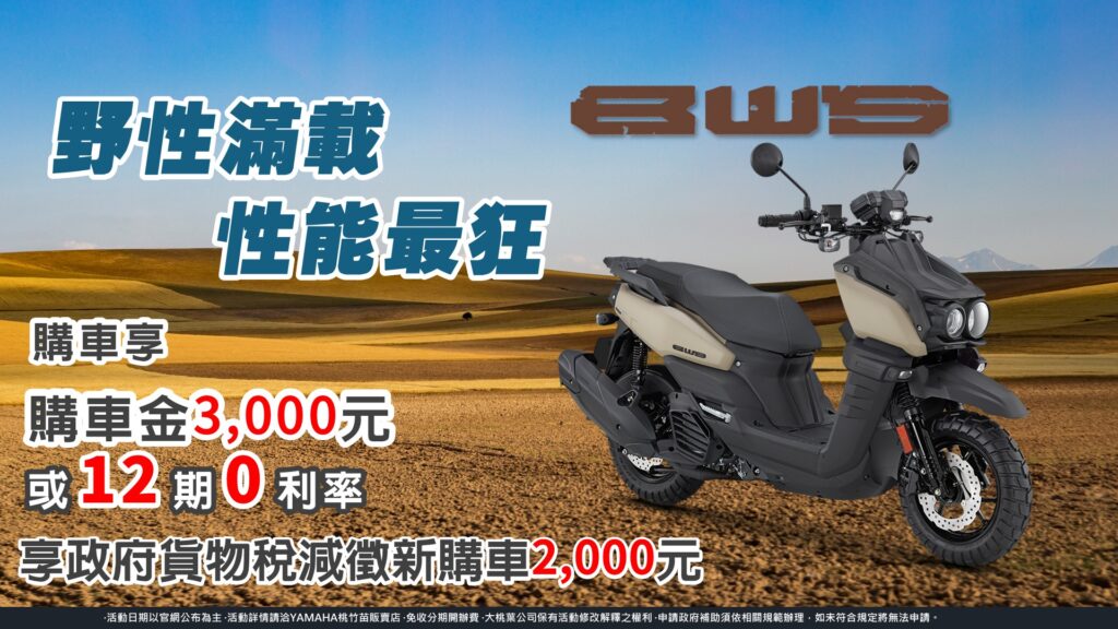 BWS 野性滿載!性能最狂!🏕️ 1.OFF-ROAD血統塊狀巧克力胎,輕度越野沒問題 2.前LED霧燈-惡劣