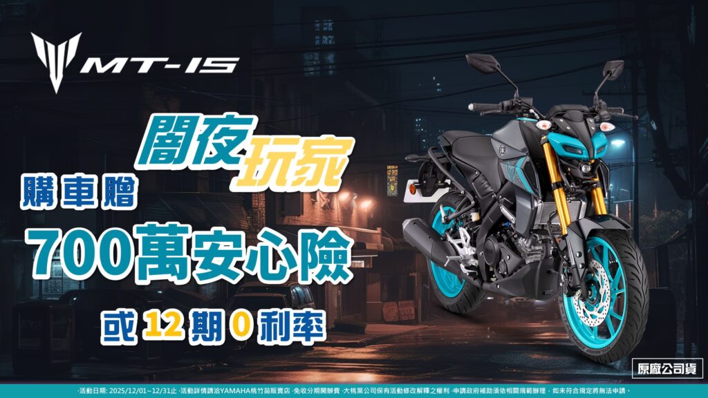 闇夜玩家MT-15 🌟入主MT-15享700萬安心險🎁 (機車丟賠車保障+機車火災事故險3萬+強制險駕駛人傷害