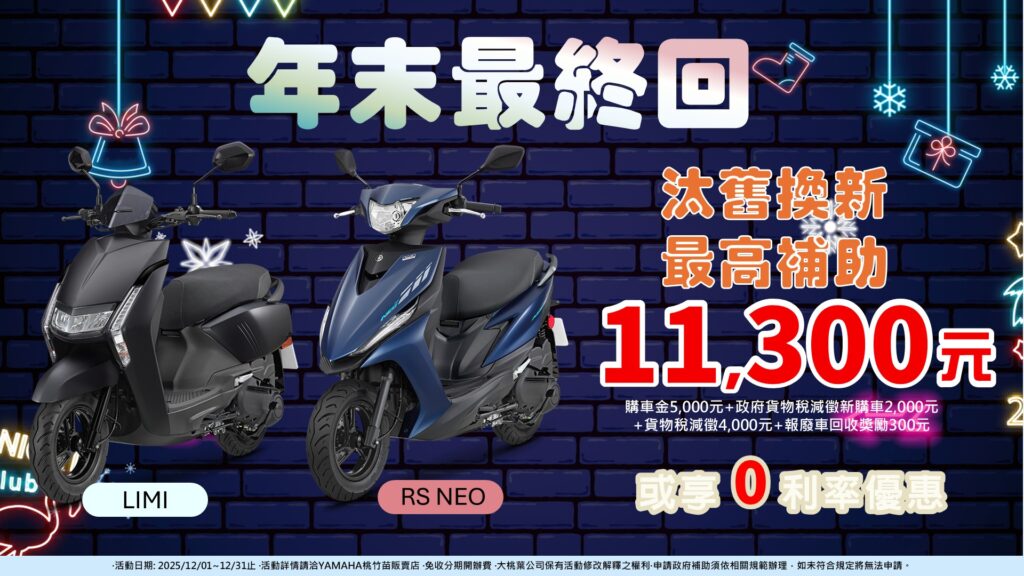 Limi/RS NEO 汰舊換新最高補助11,300元 購車金5,000元+貨物稅減徵新購車2,000+貨物稅