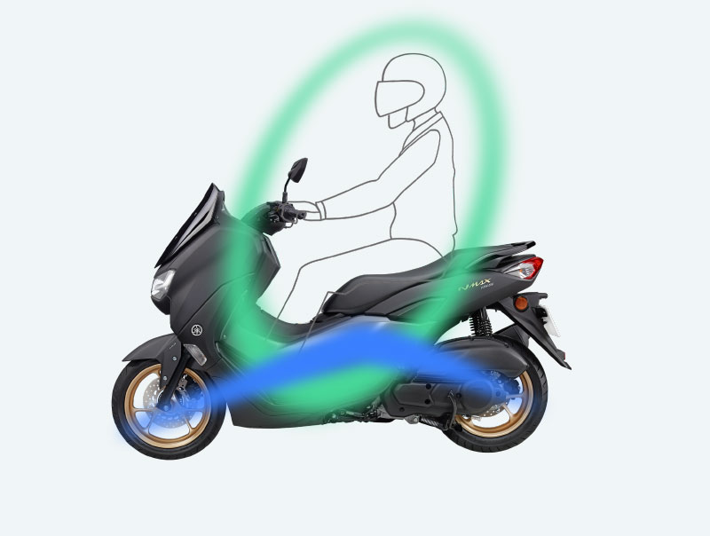 源自MAX車系的高剛性中央龍骨車架,配合最適化懸吊調整,擁有超優異的直行與過彎操控穩定性,帶來絕佳的駕駛樂趣與安全性。