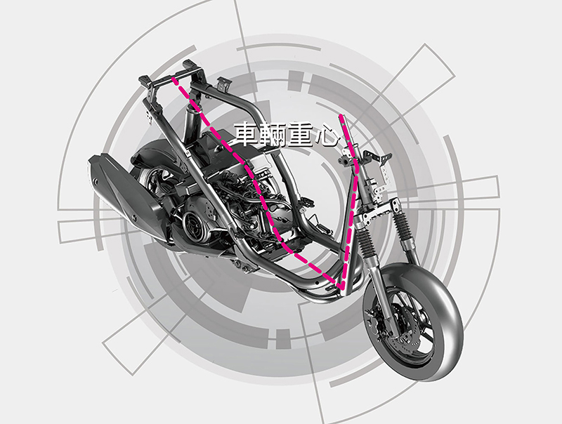 RS NEO為左右不對稱車架結構,以非對稱車架設計確保左右剛性平衡,剛性提升13%,車重低減,為同級車最輕量化車款。